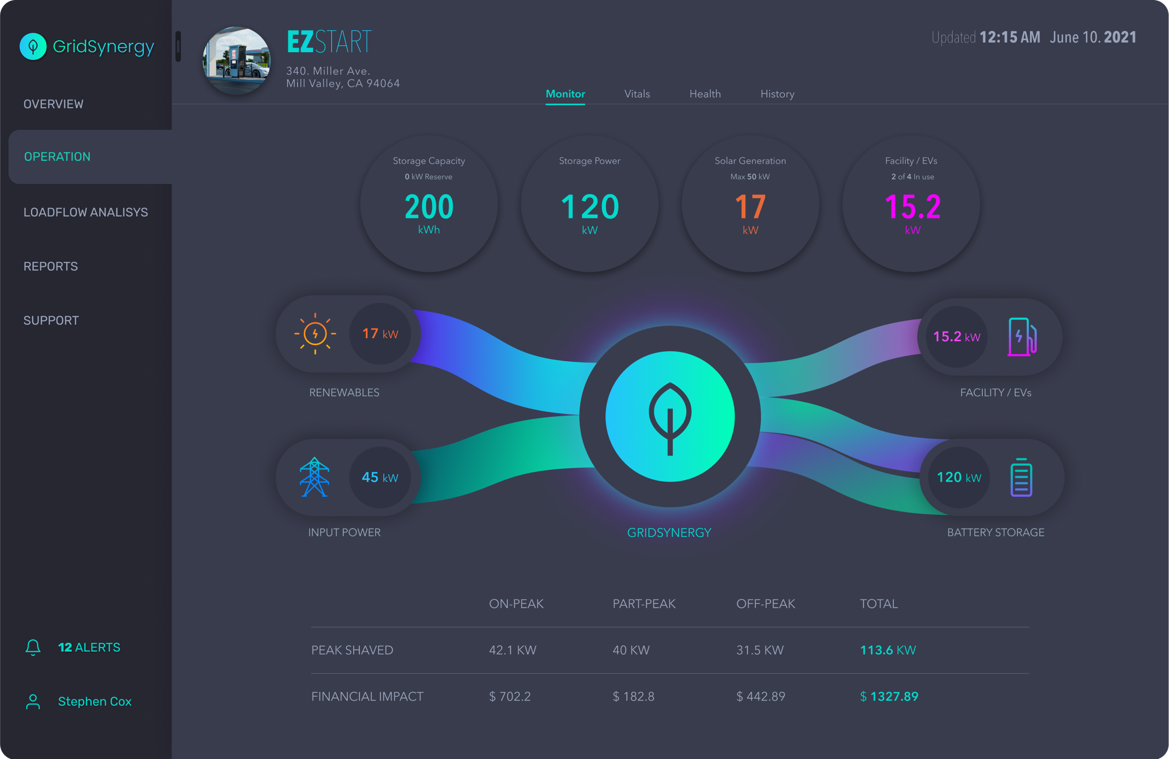 As a control system, GridSynergy relies on the analysis of thousands of sites to calculate the optimal charge and discharge cycles. As the system learns site-specific load profiles, its predictive algorithm adjusts second by second to maximize savings for the consumers.